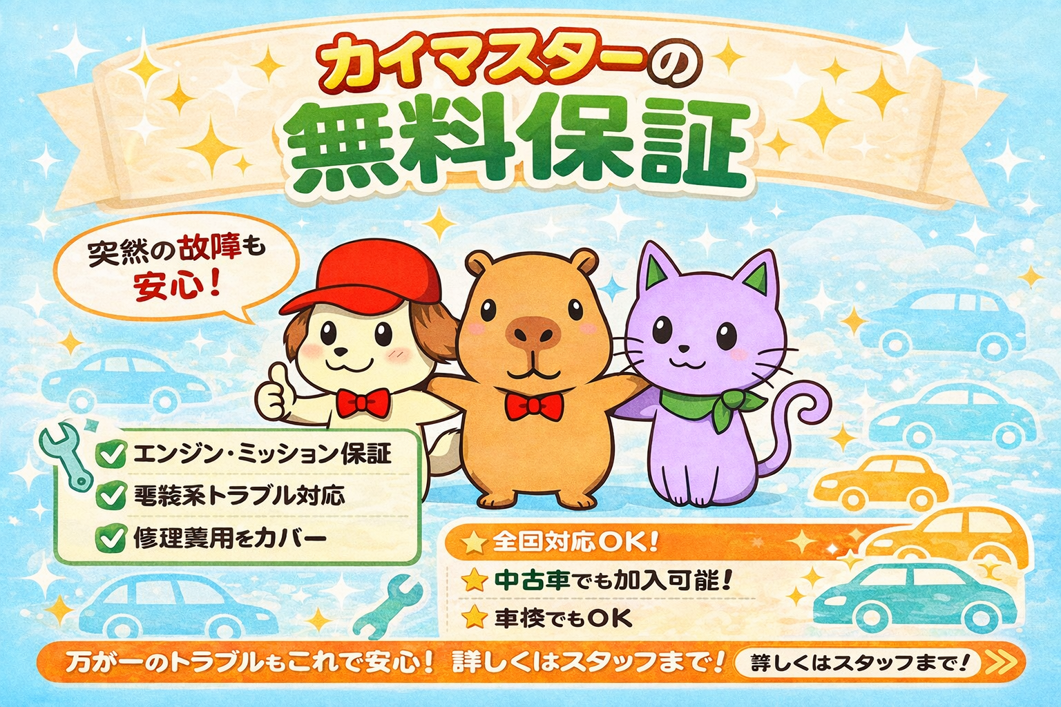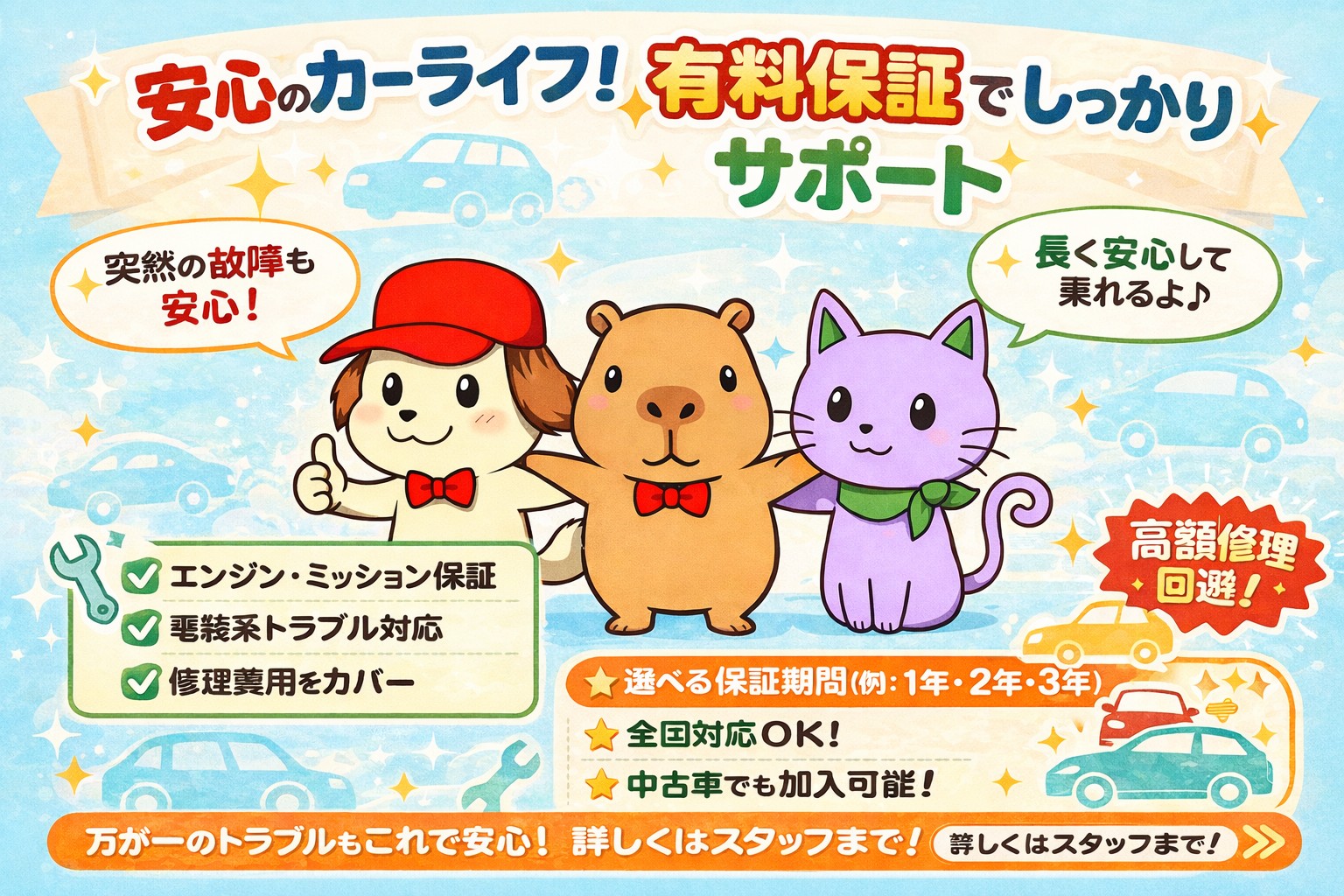 車両本体価格50万円未満はトータル修理代金 ☆50万円☆ まで