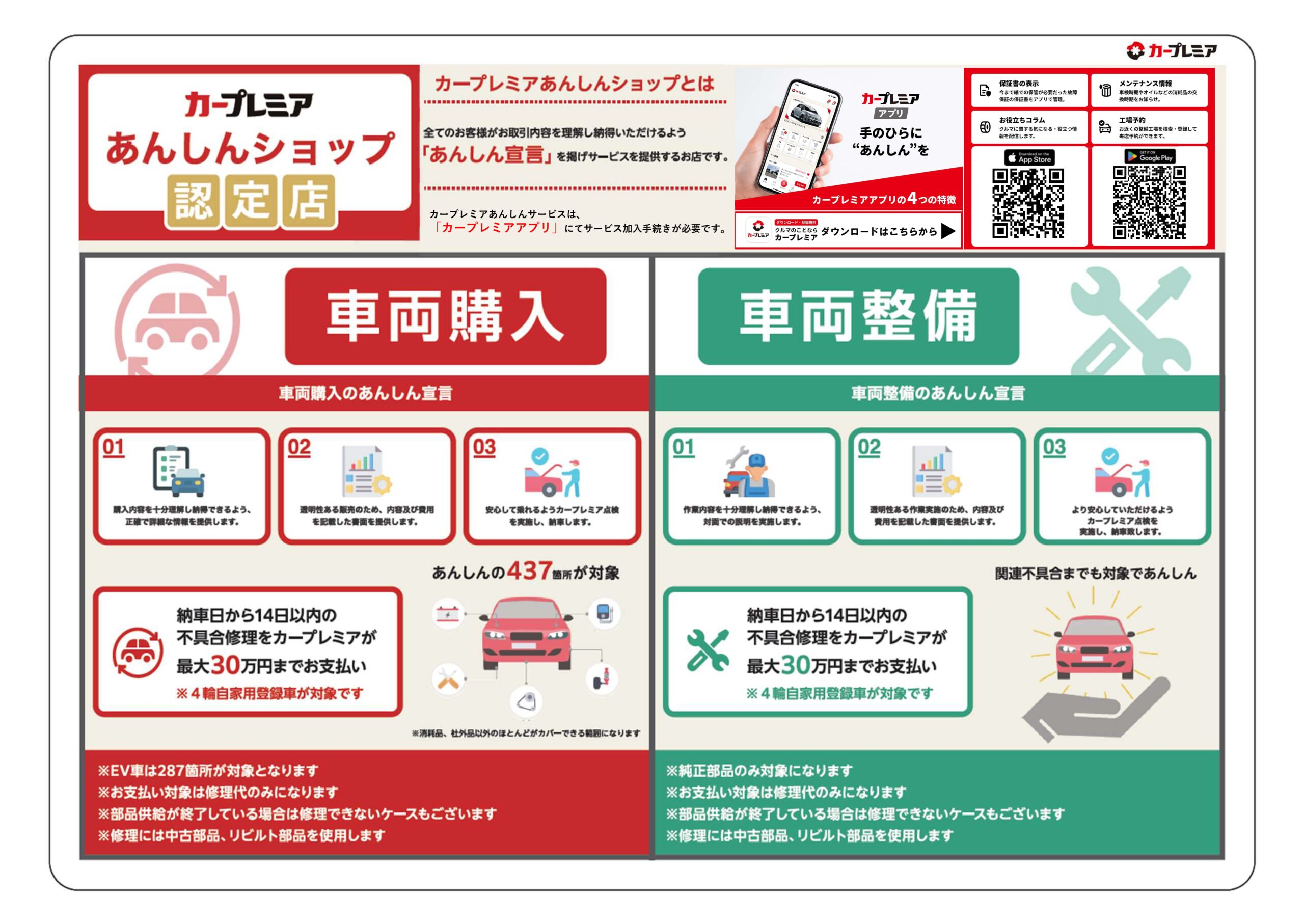 納車後2週間は461部品、保証上限金額30万円までの保証付き